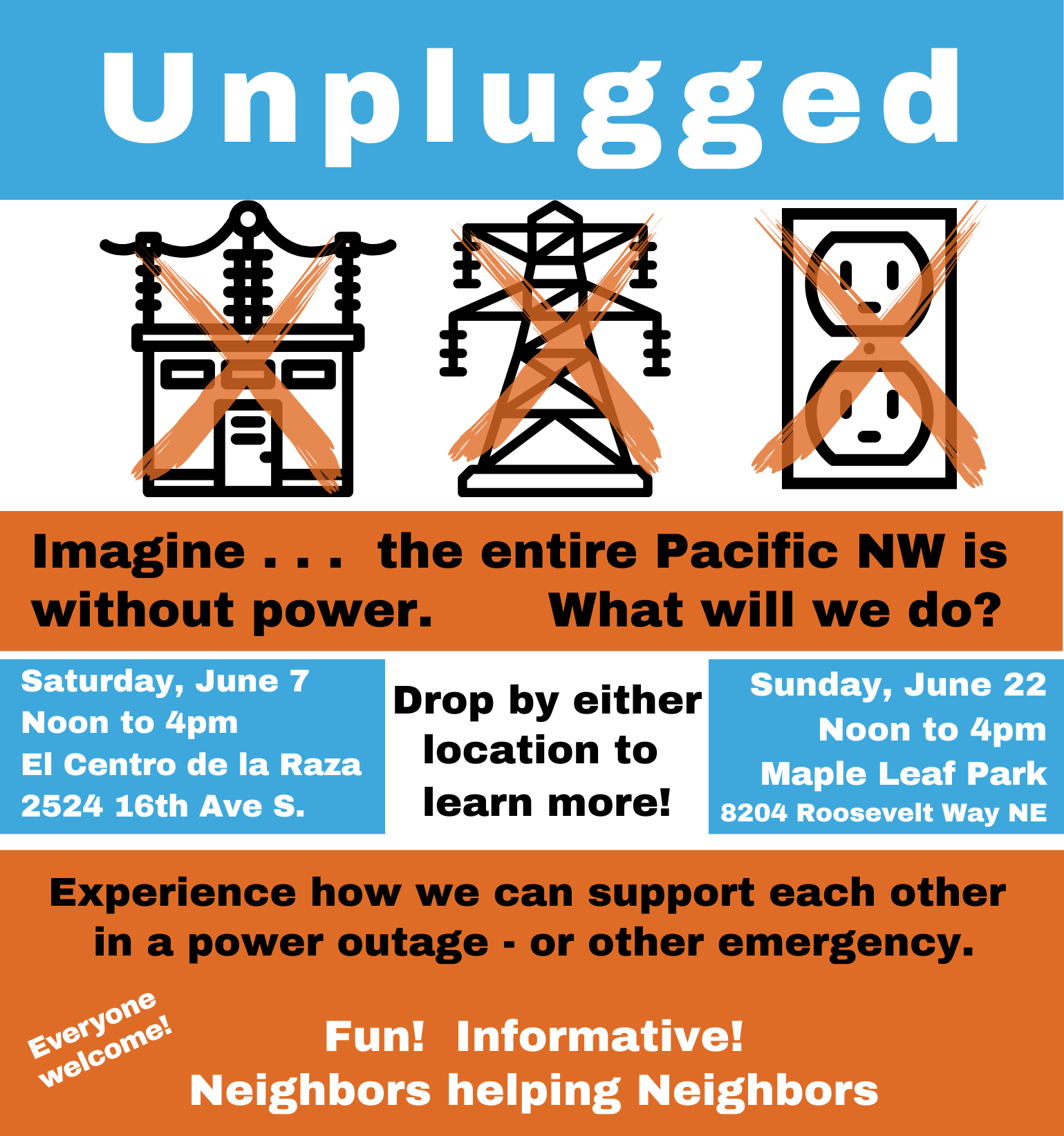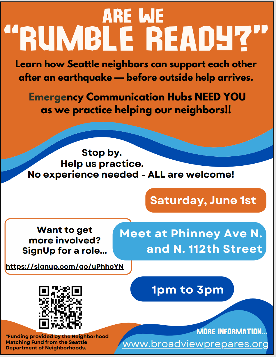 *Emergency Hubs are places where people will gather and receive, or give, help after a disaster. Neighbors exchange information and resources and help solve problems.