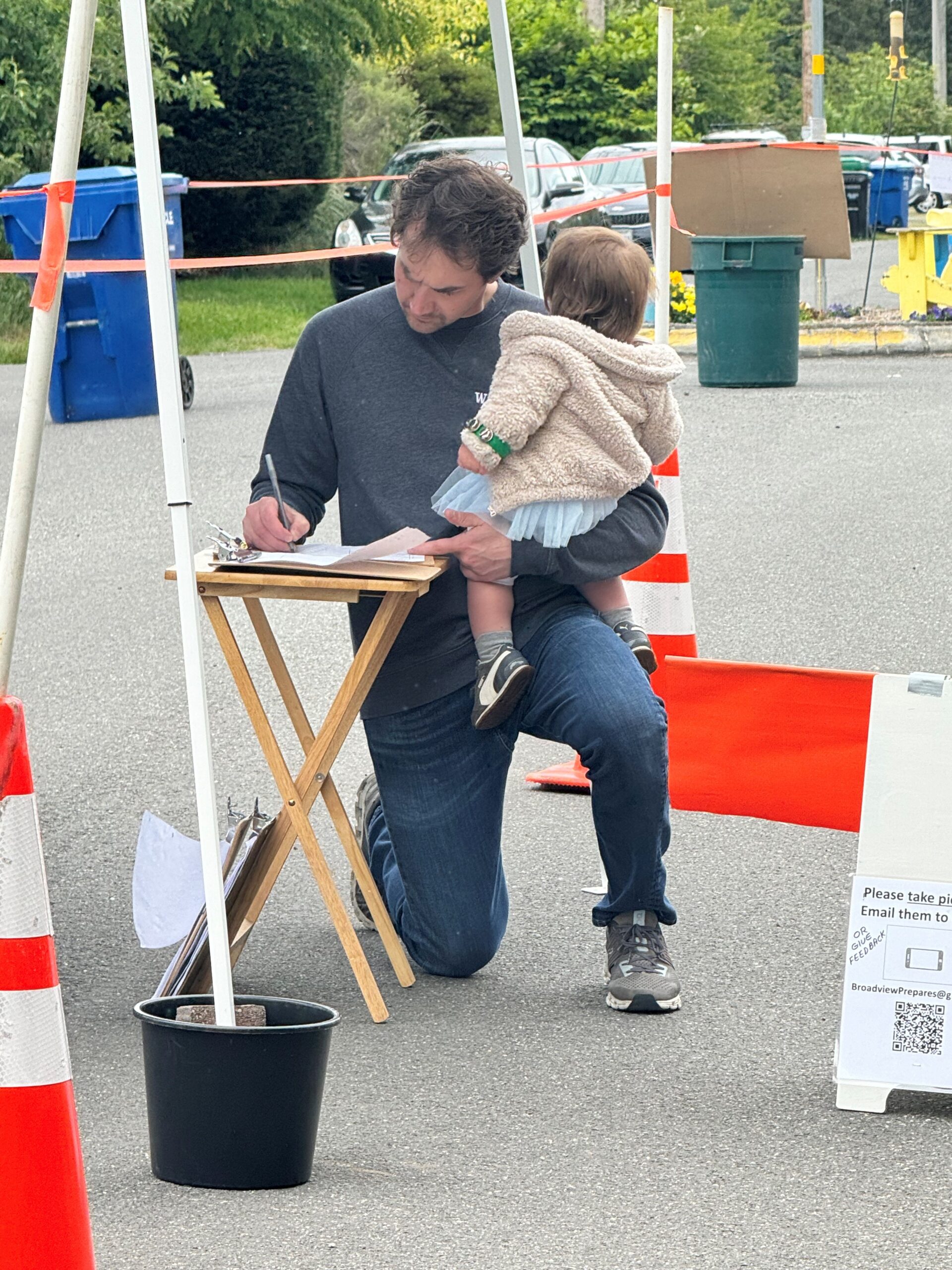 While community members enjoyed a hot breakfast and live music, volunteers from Broadview Prepares passed out preparedness information and fielded questions.